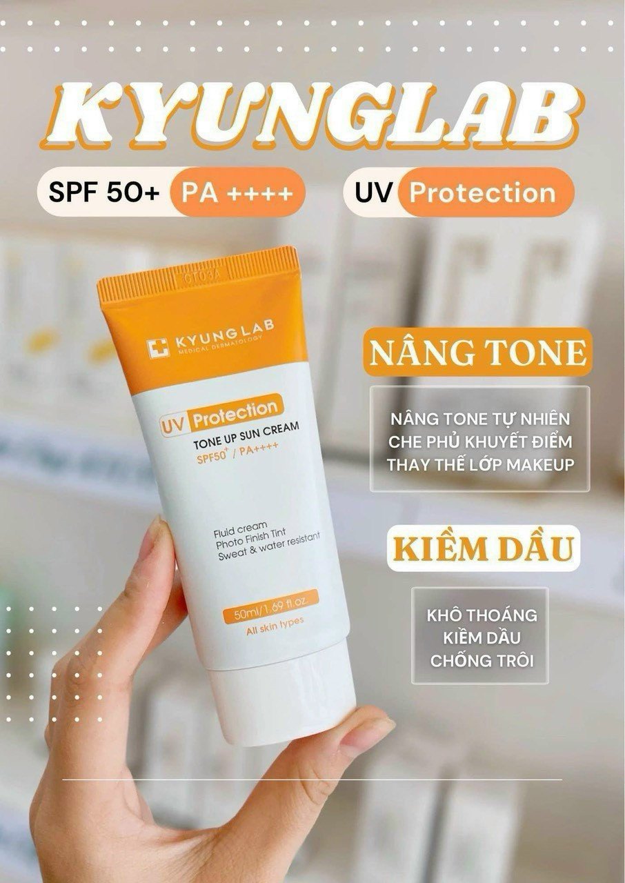 Kem Chống Nắng Kyung Lab UV Protection Tone Up Sun Cream Bảo Vệ Da Tối Ưu là dòng siêu phẩm mới nhà Kyung Lab được nghiên cứu và cho ra đời là cứu tinh cho làn da, đặc biệt là da dầu và thiên dầu vừa giúp bảo vệ da vừa là lớp make up, giúp da lên tone nhẹ nhàng, kiềm dầu, chống nước.