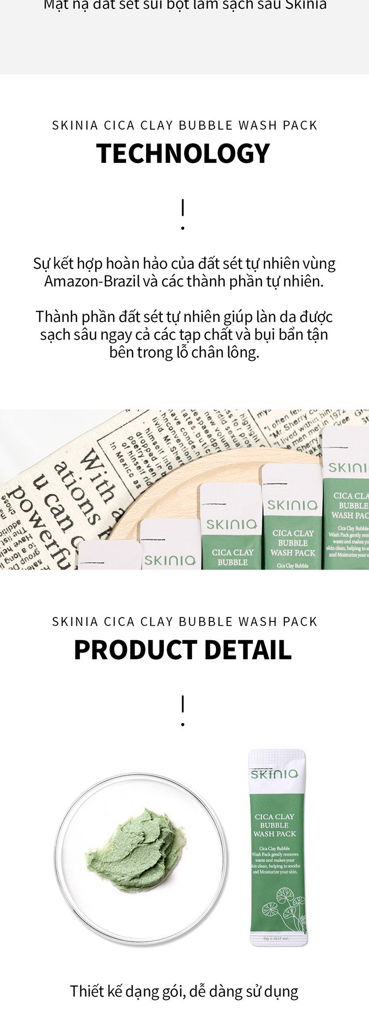 Mặt Nạ Đất Sét Thải Độc Da Sủi Bọt Skinia Cica Clay Bubble Wash Pack (Hộp 10 Gói)