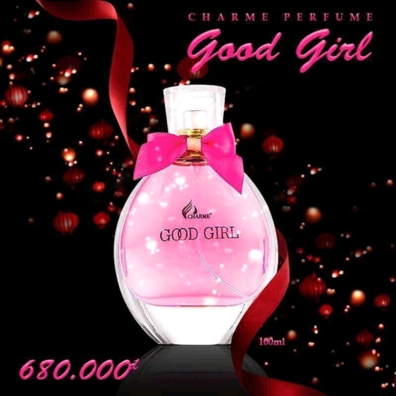 - Nước Hoa Nữ Charme Good Girl (100ml) là dòng sản phẩm của hãng Charme Perfume với hình dáng là một chiếc lọ tròn xinh xinh với chiếc nơ màu hồng ở cổ lọ giống như một nàng thiếu nữ nổi bật đầy khiêu khích.